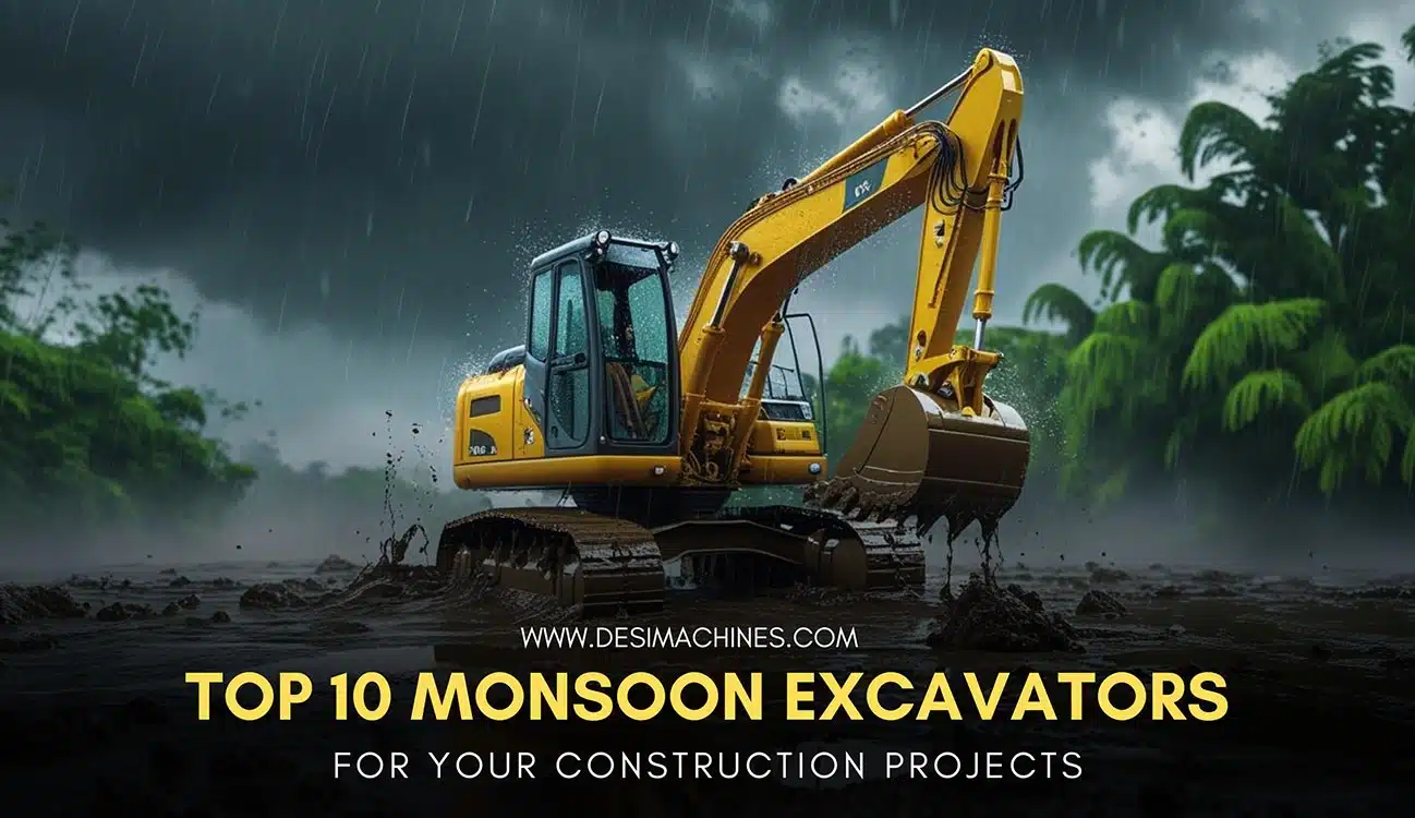Searching for the top monsoon-capable excavators in India for 2026? This blog assists you in finding the Top 10 Excavators designed to excel in the harshest rainy weather. From slushy hillsides to soggy construction sites, we have reviewed the most rugged, efficient, and weather-enduring excavators from renowned companies such as JCB, Hyundai, Tata Hitachi, Komatsu, Volvo, CAT, and many more. You’ll get to know the models featuring IP-sealed electronics, anti-skid platforms, and stable ground presence—all indispensable for monsoon excavation. The blog also features a comparison table of specifications such as engine power, bucket capacity, and recommended terrain conditions. And, discover how Desi Machines assists you in comparing prices, EMI schemes, and rent options for monsoon-specific excavations. If you are in the earthmoving or infrastructure business, this handbook ensures you invest wisely in 2026 and become rain-ready.