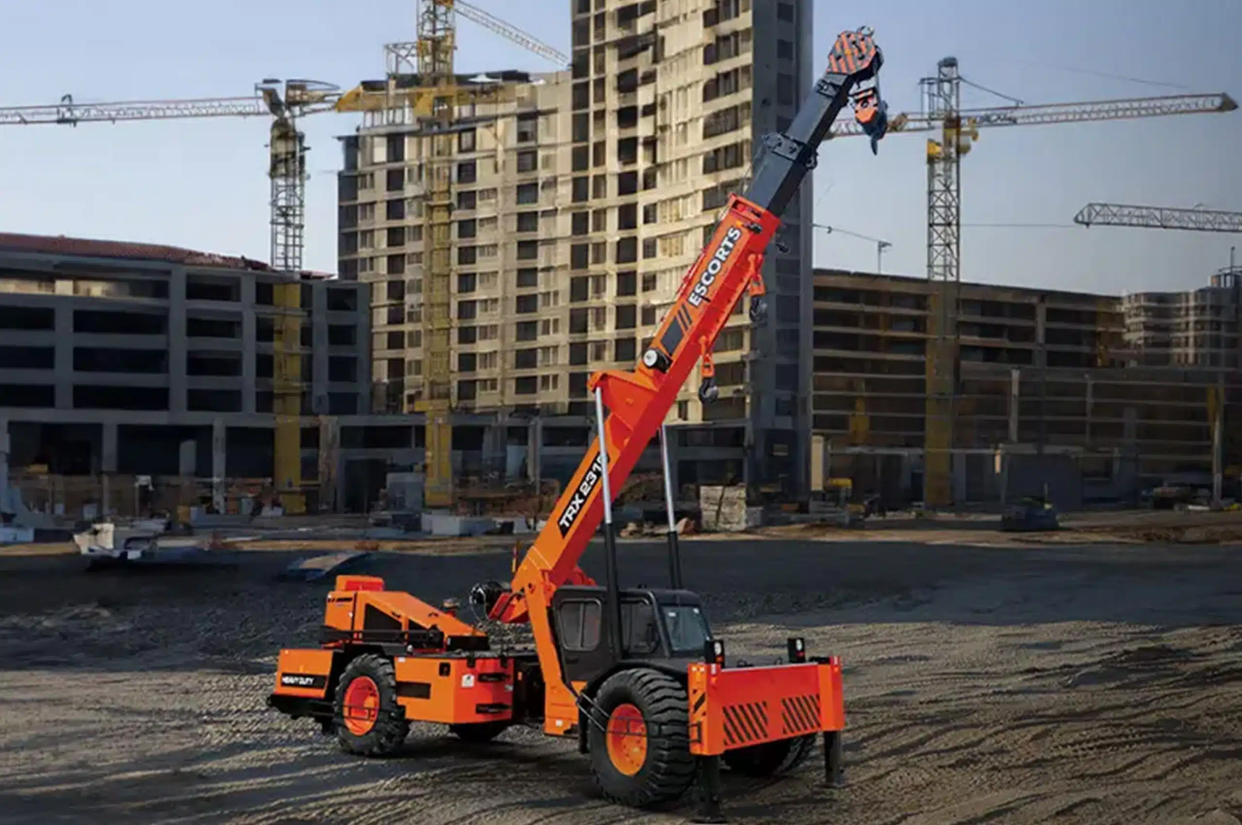 Escorts TRX 2319 offers 23-ton lifting capacity at 1.5 m radius, ideal for infrastructure, ports, and heavy construction industries.